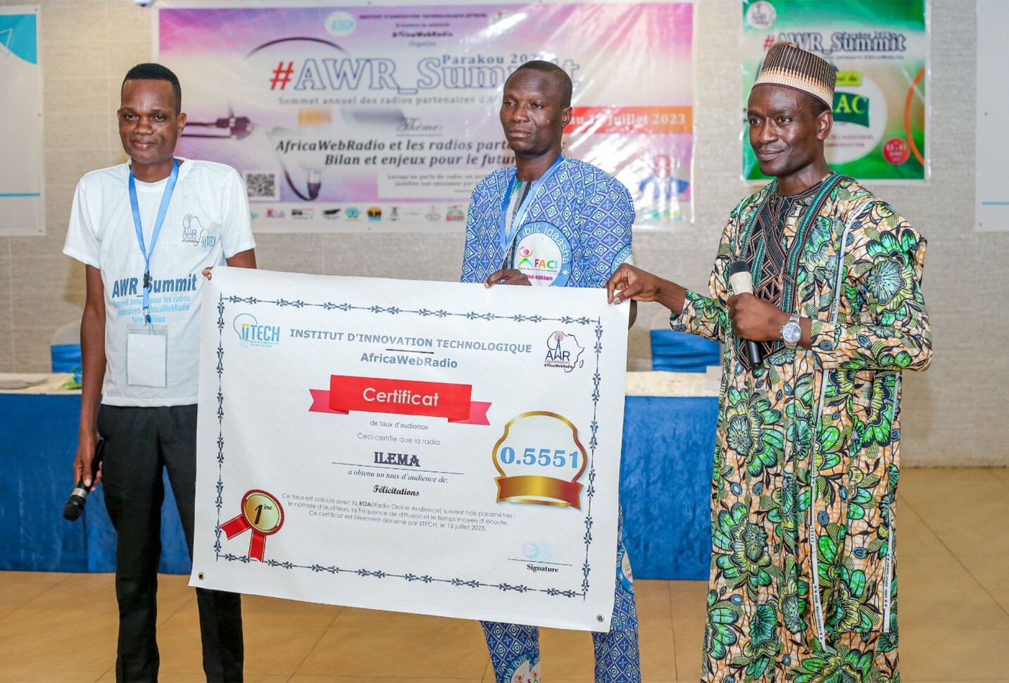 Identification et remise de prix aux trois (03) radios du sommet selon la RoA (Radio Online Audience). Remise d’attestation de participation